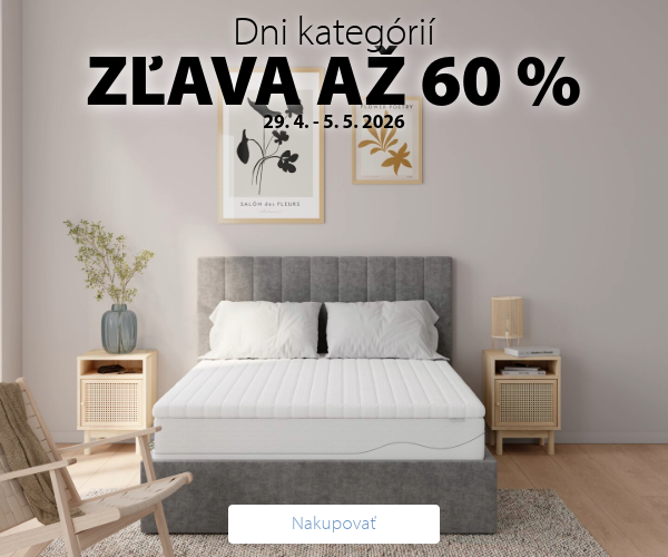Prezrite si ponuku matracov, nábytku, ale aj dekorácií alebo textilu online alebo sa zastavte v najbližšej predajni. Dni kategórií trvajú iba do utorka 5. mája 2026. |